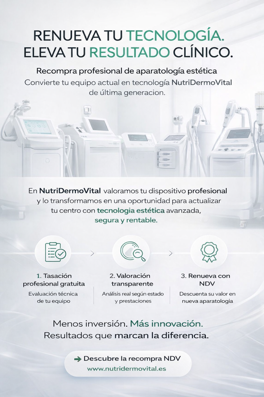 Convierte tu equipo actual en tecnología NutriDermoVital de última generación. Renueva tu tecnología estética. Es fácil. Es inteligente.